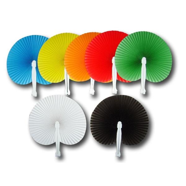 14cm round paper fan with palstic handle , can print logo or design on paper both sides.
